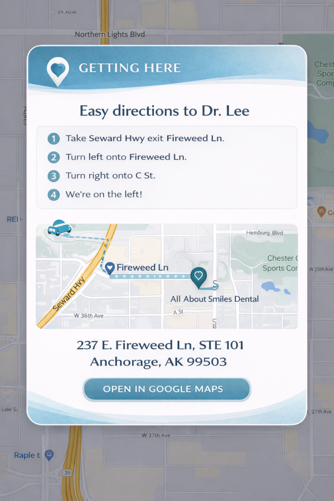 Family & cosmetic dentistry in Anchorage. Clean, calm, and professional care with a modern approach.